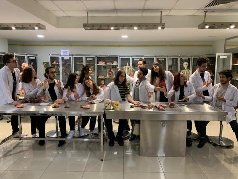 2 adet kadavramız bulunmaktadır. Anatomi pratik derslerinde 6-7 kişilik gruplara dersin konusu hakkında 5-6 maket düşmektedir. Her masada aynı konu hakkında yeterli sayıda maket bulunmaktadır. Tam iskelet 3 adet bulunmaktadır. Laboratuvarın büyüklüğü kişi sayısına göre gruplara ayrıldığımız için yeterli olmaktadır.