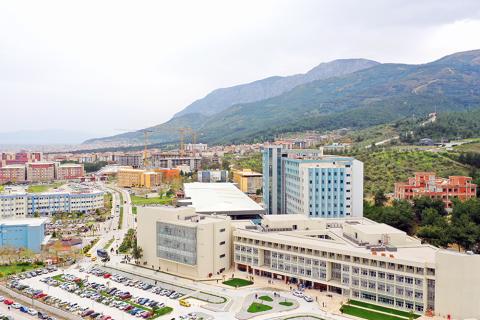 Hastanemiz 2 ana bloktan olusmaktadır. Ön bloğunda Acil Servis, Polklinik, Laboratuvar ve idari birimler hizmet vermektedir. Arka blokta ise yataklı kliniklerimiz hizmet vermektedir.Aynı zamanda Poliklinikler ve amfiler için yeni bir bina inşa edilmiş olup dönem 1-2-3'ler orada eğitim görmektedir. Ana bilim dallarının bulunduğu dekanlık ise hastanenin önünde, 1dk'lık uzaklıktadır. Tüm birimler aynı bölge etrafında konumlanmış olup birbirine yürüme mesafesindedir.
