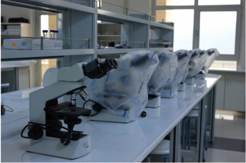 Mikrobiyoloji: Teorik ders sonrasında laboratuvar dersinde o gün işlenilen konular ile ilgili örnekler mikroskoplarla incelenmekte.